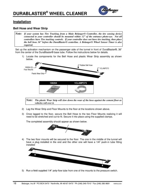 the bell hose 36” before the DuraBlaster® centerline. A Belanger® Wheel Sensor Timer is also