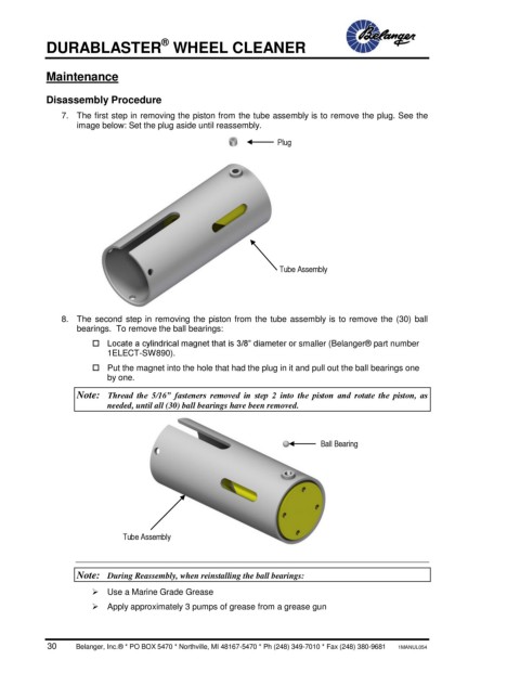 30          Belanger, Inc.® * PO BOX 5470 * Northville, MI 48167-5470 * Ph (248) 349-7010 * Fax (248) 380-9681       1MANUL054