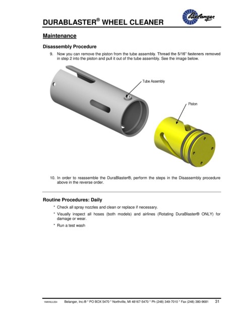 1MANUL054         Belanger, Inc.® * PO BOX 5470 * Northville, MI 48167-5470 * Ph (248) 349-7010 * Fax (248) 380-9681      31