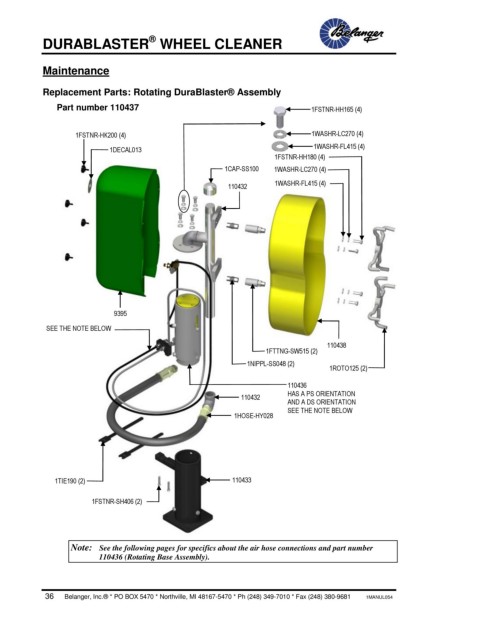 36     Belanger, Inc.® * PO BOX 5470 * Northville, MI 48167-5470 * Ph (248) 349-7010 * Fax (248) 380-9681       1MANUL054