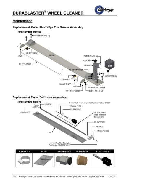 40 Belanger, Inc.® * PO BOX 5470 * Northville, MI 48167-5470 * Ph (248) 349-7010 * Fax (248) 380-9681 1MANUL054
