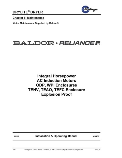 108 Belanger, Inc. * PO BOX 5470. * Northville, MI 48167-5470 * Ph (248) 349-7010 * Fax (248) 380-9681 1MANUL960