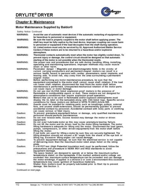112 Belanger, Inc. * PO BOX 5470. * Northville, MI 48167-5470 * Ph (248) 349-7010 * Fax (248) 380-9681 1MANUL960
