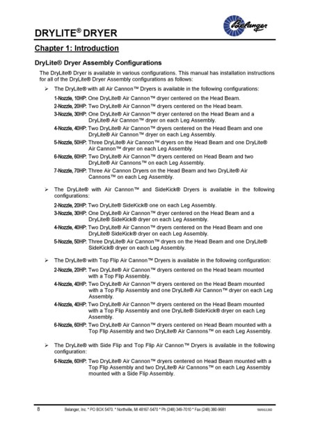 8 Belanger, Inc. * PO BOX 5470. * Northville, MI 48167-5470 * Ph (248) 349-7010 * Fax (248) 380-9681 1MANUL960