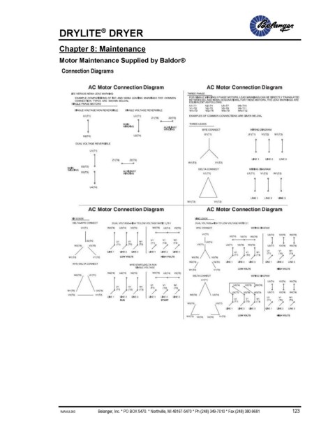® DRYLITE DRYER Chapter 8: Maintenance Motor Maintenance Supplied by Baldor® Connection Diagrams 1MANUL960 Belanger, Inc. * PO BOX 5470. * Northville, MI 48167-5470 * Ph (248) 349-7010 * Fax (248) 380-9681 123