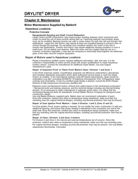 mechanical flameproof joints be maintained. Consult Baldor Electric Company for flameproof joint