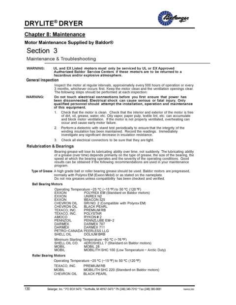 130 Belanger, Inc. * PO BOX 5470. * Northville, MI 48167-5470 * Ph (248) 349-7010 * Fax (248) 380-9681 1MANUL960