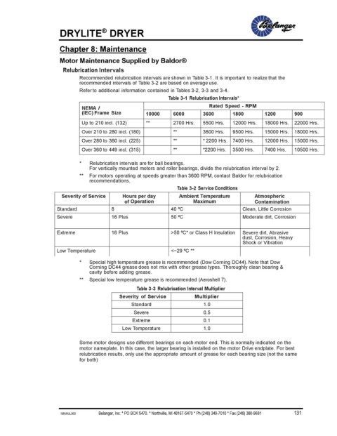 Recommended relubrication intervals are shown in Table 3-1. It is important to realize that the