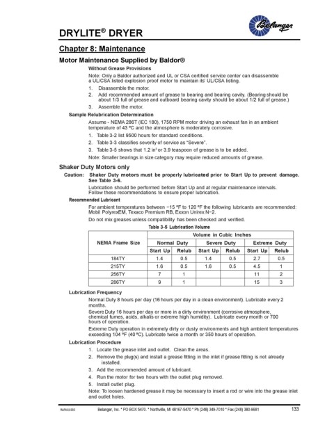 Caution: Shaker Duty motors must be properly lubricated prior to Start Up to prevent damage.