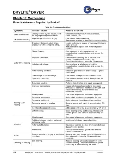 Excessive humming Have motor serviced at local Baldor service center.
