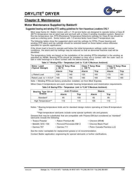 Contact Baldor application engineering for special lubricants or further clarifications.