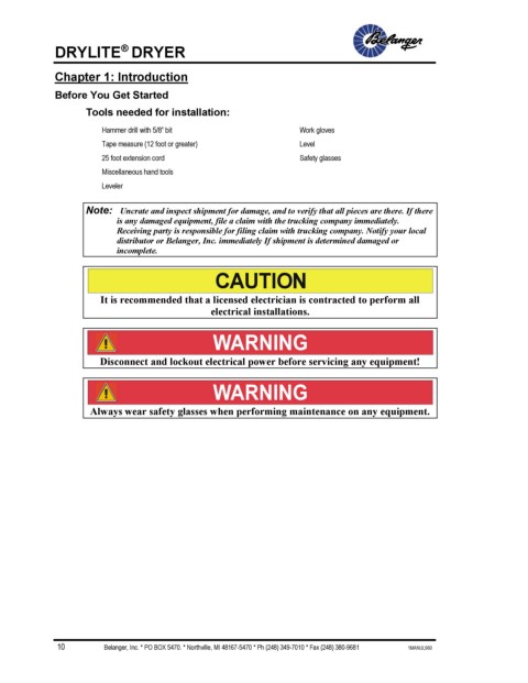 10 Belanger, Inc. * PO BOX 5470. * Northville, MI 48167-5470 * Ph (248) 349-7010 * Fax (248) 380-9681 1MANUL960