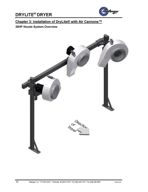 ® DRYLITE DRYER Chapter 3: Installation of DryLite® with Air Cannons™ 30HP Nozzle System Overview 24 Belanger, Inc. * PO BOX 5470. * Northville, MI 48167-5470 * Ph (248) 349-7010 * Fax (248) 380-9681 1MANUL960