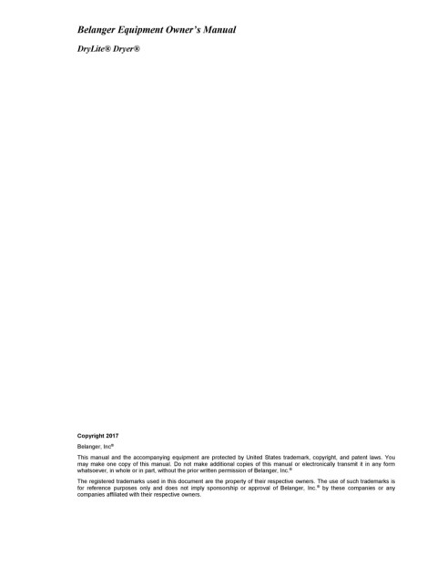 Belanger Equipment Owner’s Manual