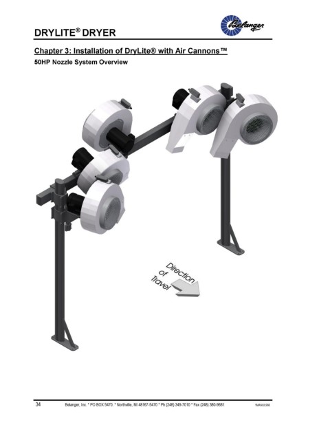 ® DRYLITE DRYER Chapter 3: Installation of DryLite® with Air Cannons™ 50HP Nozzle System Overview 34 Belanger, Inc. * PO BOX 5470. * Northville, MI 48167-5470 * Ph (248) 349-7010 * Fax (248) 380-9681 1MANUL960
