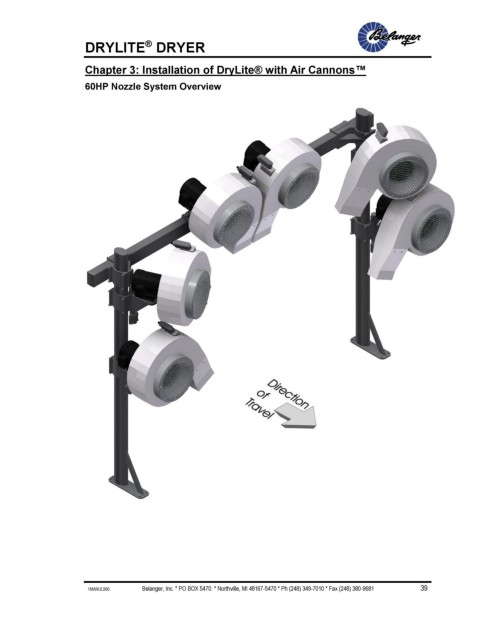 ® DRYLITE DRYER Chapter 3: Installation of DryLite® with Air Cannons™ 60HP Nozzle System Overview 1MANUL960 Belanger, Inc. * PO BOX 5470. * Northville, MI 48167-5470 * Ph (248) 349-7010 * Fax (248) 380-9681 39
