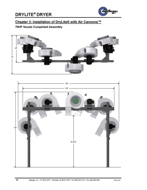 ® DRYLITE DRYER Chapter 3: Installation of DryLite® with Air Cannons™ 70HP Nozzle Completed Assembly 49” 70” 183” 164” 136” 93-3/16” 48 Belanger, Inc. * PO BOX 5470. * Northville, MI 48167-5470 * Ph (248) 349-7010 * Fax (248) 380-9681 1MANUL960