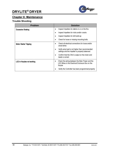 82 Belanger, Inc. * PO BOX 5470. * Northville, MI 48167-5470 * Ph (248) 349-7010 * Fax (248) 380-9681 1MANUL960