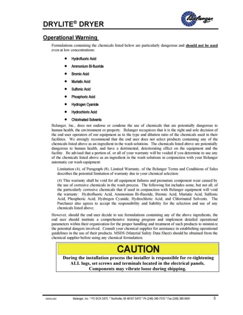 the particularly corrosive chemicals that if used in conjunction with Belanger equipment will void