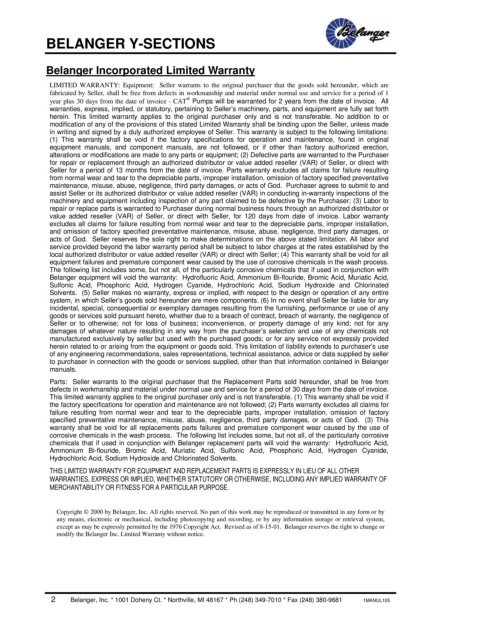 2 Belanger, Inc. * 1001 Doheny Ct. * Northville, MI 48167 * Ph (248) 349-7010 * Fax (248) 380-9681 1MANUL105