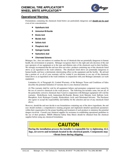 1MANUL088 Belanger , Inc. * 1001 Doheny Ct. * Northville, MI 48167 * Ph (248) 349-7010 * Fax (248) 380-9681 3
