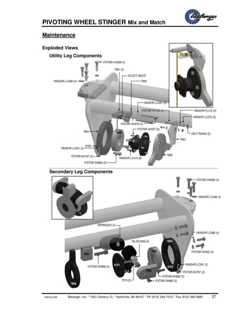 1MANUL586 Belanger, Inc. * 1001 Doheny Ct. * Northville, MI 48167 * Ph (810) 349-7010 * Fax (810) 380-9681 27