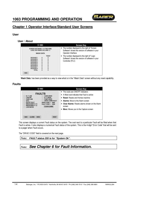 Chapter 1 Operator Interface/Standard User Screens