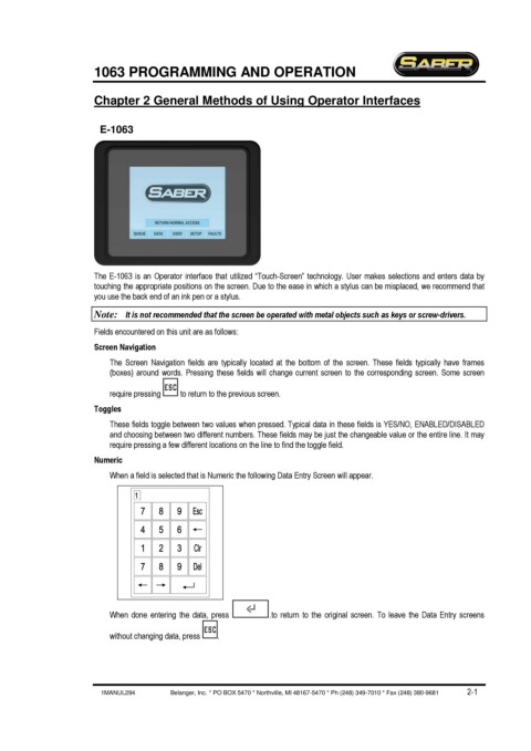 1MANUL294 Belanger, Inc. * PO BOX 5470 * Northville, MI 48167-5470 * Ph (248) 349-7010 * Fax (248) 380-9681 2-1