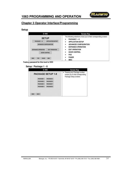 1MANUL294 Belanger, Inc. * PO BOX 5470 * Northville, MI 48167-5470 * Ph (248) 349-7010 * Fax (248) 380-9681 3-1