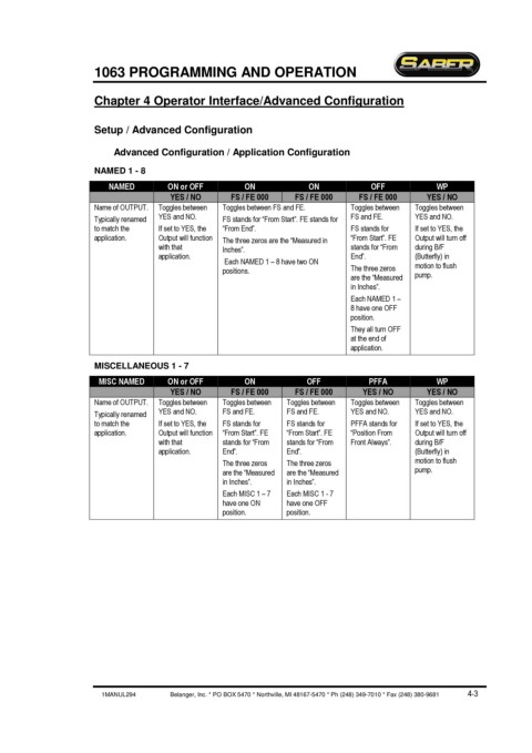 1MANUL294 Belanger, Inc. * PO BOX 5470 * Northville, MI 48167-5470 * Ph (248) 349-7010 * Fax (248) 380-9681 4-3