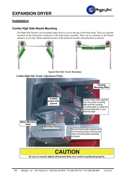18 Belanger , Inc. * 1001 Doheny Ct. * Northville, MI 48167 * Ph (248) 349-7010 * Fax (248) 380-9681 1MANUL093