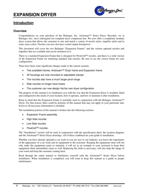 6 Belanger , Inc. * 1001 Doheny Ct. * Northville, MI 48167 * Ph (248) 349-7010 * Fax (248) 380-9681 1MANUL093