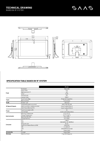 SPECIFICATION TABLE BASED ON 15” SYSTEM