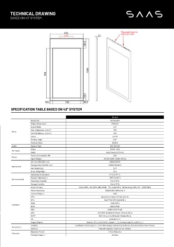 SPECIFICATION TABLE BASED ON 43” SYSTEM