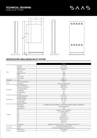 SPECIFICATION TABLE BASED ON 49” SYSTEM
