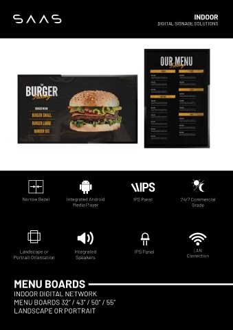 MENU BOARDS 32” / 43” / 50” / 55” Accessories Graphic Engine OpenGL ES 1.1/2.0/3.0/3.1, OpenC L 1.1, Renderscript, Dir ect3D 11. 1
