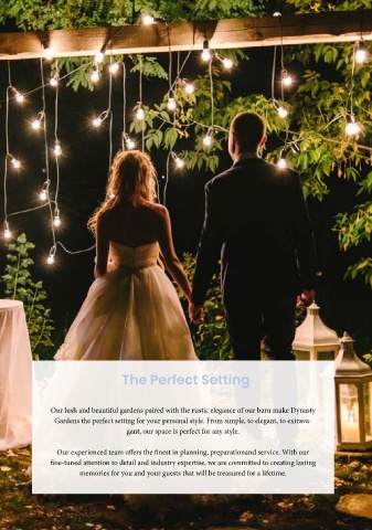 Our lush and beautiful gardens paired with the rustic elegance of our barn make Dynasty