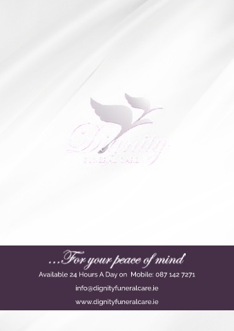 Available 24 Hours A Day on Mobile: 087 142 7271 info@dignityfuneralcare.ie www.dignityfuneralcare.ie