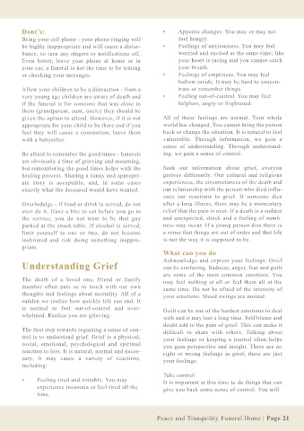 Funeral Etiquette Sign the register book - the family will keep the Dont’s: • Appetite changes. You may or may not