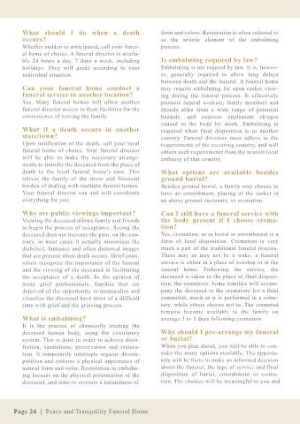 natural form and color. Restoration in embalm- about the funeral, the type of service and final