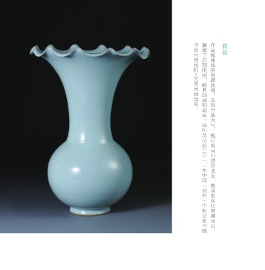中原六省民间工艺美术展金奖。  凝聚了无限能量,极具动感和韵味。该作品荣获二  作品瓶体线条饱满流畅,造型夸张大气,瓶口似荷叶漂浮水面,瓶身似水柱喷薄而出,  荷韵