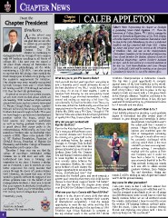 CHAPTER NEWS From the Chapter CALEB APPLEToN Chapter President Spotlight Brothers, Editor’s Note: Representing the chapter as Spotlight is graduating Senior Caleb Appleton ’15. From the s the school year hometown of College Station, TX, Caleb is earning his degree in Biomedical Engineering at Ga. Tech. Having Acomes to a close, I served the chapter as Public Relations Chair and as Chair am glad that we are able for Run for the Kids Philanthropy, he also is a dedicated to refect on yet another triathlete and has competed with Team USA. During exceptional year for his Junior and Senior year he served as the President Gamma Tau. The of Triathlete Club, and was on the Undergraduate chapter is continuing to Curriculum Committee for the Biomedical Engineering distinguish itself on Georgia Tech’s campus Dept; Board Member for Student Advisory Board for with 84 brothers excelling in all facets of Biomedical Engineering; current Teacher’s Assistant college life. This past year we earned a for dept.; and he has worked as a research assistant in 1st place fnish among all fraternities in the Bao Ga. Tech Nano-Medicine and Gene Therapy athletics and philanthropy, all the while Caleb with brothers Patrick Wallin and Gerald Demeunynck Lab. In the fall, Caleb will be working as an Associate maintaining a 3.28 GPA. I am also proud mountain biking in Moab, UT spring break 2014. Consultant for Bain & Co. out of the Atlanta offce. to say that this fall pledge class marked the third straight year in which every pledge met the academic requirements for initiation. What led you to join Phi Gamma Delta? Triathlon Championships in Edmonton Canada. our chapter was even recently recognized Had you told me four years ago that I was going to The trip was a great opportunity to compete by both Georgia Tech and 11 Alive News join a fraternity and it would ultimately be one of against some of the best triathletes in the world. for raising over $13,750 through our annual the best decisions of my life, I would have called Despite a rough training year, which involved the FIJI Run for the Kids philanthropy. you crazy. As an out of state student, I came to theft of my bikes, I was able to place in the top As proud as we are of our current success, Georgia Tech knowing no one and quickly found twenty in both my events with a 13th place fnish we are even more excited about where we that I needed to get involved somewhere. I rushed in the olympic distance. Triathlon continues to be are heading. With numerous improvements around and ending up receiving a bid from Fiji; something I am passionate about; in fact, this past around the house, such as a newly renovated coincidentally Fiji had fve brothers from Texas, my weekend I missed earning my professional license G. Wayne Clough Study Lounge, Landon- home state, at the time. Additionally, one of the men I by 14 seconds and one place. Nelson Hall is truly becoming a home for the respected most in the world at the time, Clay Horton How did you land a job with Bain & Co.? brothers that pass through its halls. This year (Alpha Mu 2006) was a Phi Gam; I thought if Phi I had initially planned on pursuing a post-graduate we have begun a professional development Gamma Delta was a place that developed gentlemen degree in biomedical but after several years of position within the house, which has of quality like Clay, it was a place I wanted to be. research in gene therapy and internships in device held resume and interview workshops Why did you get involved with development, I realized this wasn’t as well as having graduate brothers visit Run for the Kids? the career path that I wanted to to speak about their career paths to the pursue. I began looking at other undergraduates. Additionally, we have had Run for the Kids has been Gamma options and stumbled upon the numerous brothers take on leadership roles Tau’s marquee philanthropy event feld of management consulting outside of FIJI. These roles include CFo for several decades and involves as I thought it would allow me to of GT Student Foundation, President of the running of a game ball to the be constantly challenged while GoALS Soccer, President of Habitat for host stadium before the annual utilizing what I think is the most Humanity, and Scheller College of Business Georgia vs. Georgia Tech football vital skill you learn as an engineer: Ambassadors just to name a few. game. As a runner, this event has problem solving. I immediately Therefore I hope you can see that the always interested me as it requires meshed with the culture at Bain culture of excellence established within brothers from both the Gamma and Company and it could not Gamma Tau is still alive and well. This Tau and Kappa Deuteron chapters have been a better ft. I actually brotherhood has been a blessing and to work together to run the ball was extremely thankful to the Phi inspiration to me since I became a pledge over seventy miles between the Gam network during my search and as President, I aim to provide an even two campuses. Further, the event Caleb on the run during ITU Olympic as I was able to utilize several better experience for every member that gives brothers of each chapter the Distance World Championships. graduate brothers, from Gamma comes through the doors of Landon Nelson unique opportunity to set aside the Tau and elsewhere, during my Hall. However, we know that none of this “clean, old-fashioned hate” that search. I will be starting in early August and cannot would be possible without the support of our surrounds the football game and work towards a wait to hit the ground running. driven graduate base. on the behalf of our greater goal: ensuring that every sick child has the undergraduate brothers, I want you to know chance to hear those magical words “all better.” Any plans for after graduation? that your support is absolutely invaluable to This year the Gamma Tau chapter alone raised I am quite lucky in that I will have almost fo