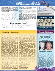 Alumnae News Patricia Schroth ’54 has six grandchildren wait for rush. If she pledges ADPi, she will that have graduated from college. One just be a 4th generation in the family! fnished high school and is off to Indiana University. Two of her granddaughters were Jean Schlinkmann ’75 is now a volunteer Visit the new Sigma Alumnae ADPi’s at Michigan. docent for the Chicago Architecture Facebook page at: Foundation and is giving tours in downtown Sharon Milley ’68 shared that Kate, the Chicago! https://www.facebook.com/#!/pages/ADPi- daughter of Sally Harryman Mueller ’84, Sigma-Alum/551806534952730 will be a sophomore at WMU. She was Judith Cantrill ’80 is offcially retired from tapped by Alpha Lambda Alpha, and is on teaching after 30 years - most of that in her the Dean’s List and honors college for her favorite grade, kindergarten. Judith recently Save the Date frst year in psych. Allison, the daughter of celebrated her 29th wedding anniversary Wendy Harryman Ayers ’82, will start at with her husband on June 29th. They reside Southeast Mo. State this fall and can hardly in Phoenix and have a son. Have Alumnae News? We want to hear from you! Send your personal updates, accomplishments, adventures, and photos to our Account Manager Kasey Breedlove at kbreedlove@thelaurusgroup.net, or simply fll out the tear-away form at the bottom of your cover letter and return it in the Founders Day 2015 mail. We want to share it in the next issue of The Sigma Star! Details TBA Sister Passings Housing (Continued from Page 1) this incident and insurance reimbursement is ’10 as our new Interim President and we will Isabel Donahue Buckley ’31 still unknown. Fortunately, our corporation is be welcoming Kaylee Barron ’11 to the board. Eleanor Gates Parsons ’32 in good fnancial shape right now but it goes Earlier this summer, I attended the Alpha without saying that this will put a big dent Delta Pi Leadership Seminar in Atlanta. Alice Flagg Feutz ’34 in our reserves and we’ll have to re-evaluate It was the frst time they’ve held separate Marilyn Scanzoni Collins ’58 before we can move forward with any big training sessions specifcally for Housing projects like the bathroom renovations we Corporation members and I learned so much! Marilyn Lemke ’63 were hoping to complete next summer. One of the presenters said this, and it really You know that phrase “never a dull stuck with me. moment,” right? Well it certainly applies to “House Corporation folks are the bravest life on the Housing Corporation! volunteers in the world. You are basically There are some happy things to report too landlords providing housing to 18-21 year though. Many of you may remember the old women, in an environment where there university parking lot located behind the are also a lot of 18-21 year old men. What house - where we would sometimes take could possibly go wrong?” a parking lot gamble for a few hours (or It makes me laugh because I know how minutes!) The university was no longer using much my perspective has changed since the lot and after a lot of hard work from our I’ve joined the Housing Corporation. After Isabel Donahue Buckley ’31 former Corp. President Katie Meyer ’99 and years spent in a chapter advisory role, the our attorney, we’re happy to say that we’ve Housing Corporation really is the other died peacefully at home with her daughter, been able to lease the space for use by our side of the coin. But I can’t begin to tell Mary Pat, by her side. Isabel was born in members. We’re really excited about this you how much I am enjoying it. It feels Bloomington, Illinois on December 30, development. It’s an additional fve parking like an awesome responsibility, being the 1911. She attended the University of Illinois spots (when we only had two before!) stewards of this beautiful facility so many and was elected prom queen in the fall of Several other smaller projects have also of us still call “home.” We are ALWAYS 1932. Isabel went on to receive her Masters recently been completed at the house – in need of more volunteers on the Housing in Social Work from Loyola University including re-painting the basement chapter Corporation. The time commitment is in 1949. She married Cornelius Vincent room (a beautiful shade of light blue) and minimal (I wouldn’t lie to you, sisters!) but Buckley, November 10, 1951. They moved yesterday we approved leasing a very fancy the rewards are immeasurable. If you’re to Wilmette in 1955. Isabel had a long career coffee machine for the girls to use (another interested in volunteering please contact me in social work and has been described by her one of those “wish we had had this back in at shannonsandoval@mac.com. colleagues as a kind, understanding, and true the day” kinds of things). Love and Violets, professional with a great sense of humor who We recently held our annual meeting was dedicated to serving others. She will be and while most of our membership and greatly missed, but never forgotten. offceholders will remain the same, we are excited to have Stephanie Grassel Skelton Shannon Sandoval ’94