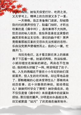 么?妹妹何时学会了箫呢?她卧病在床,绝