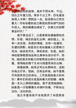 充沛。她谈笑风生,神采奕奕。但是,她的