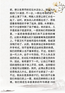 楼的门ロ凝望。不一会,一群出考场的孩子,