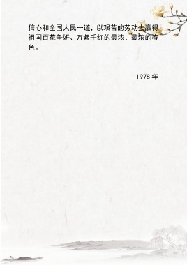 信心和全国人民一道,以艰苦的劳动去赢得 祖国百花争妍、万紫千红的最浓、最浓的春 色。 1978 年