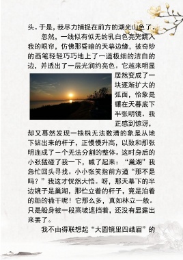 头。于是,我尽力捕捉在前方的湖光山色了。