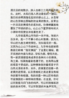 九华街是高山环抱的一块平地,海拔六
