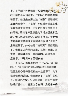 排遣忧愁和苦闷,我又踱到了“花师”的住